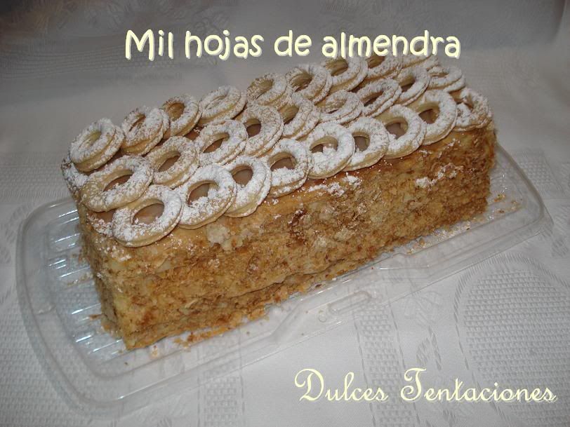 Láminas de pasta hojaldrada rellenas de crema pastelera de almendra.
